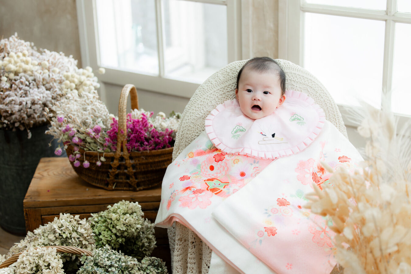 初着、セレモニードレスを多数そろえております。撮影時はレンタル無料。お宮参り時の外出初着レンタルも無料です。